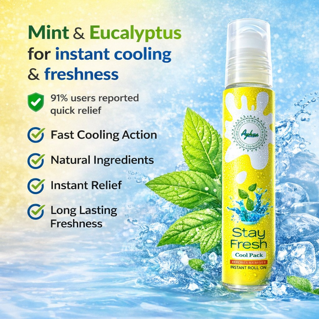 Stay Fresh Roll-On is a natural aromatherapy roll-on that helps provide quick relief from headache, migraine, sinus pressure, joint pain, back pain, neck pain, and stress-related discomfort. It also has a refreshing fragrance that helps you feel relaxed and fresh.